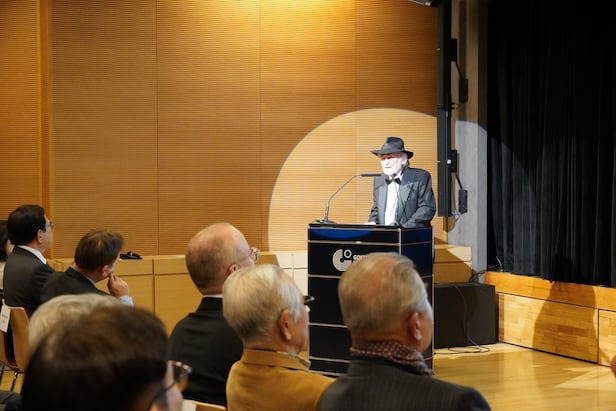 지난 3일 주한독일문화원에서 열린 이미륵상 시상식에서 베르너 사세 함부르크대 명예교수가 수상 소감을 발표하고 있다. /한독협회