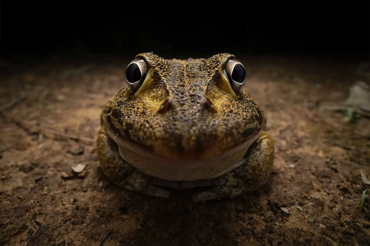 2024 웃긴 야생동물 사진전 젊은 사진작가 부문(25세 이하) 1위 킹스톤 탐(Kingston Tam 홍콩)의 '어색하게 웃는 개구리(Awkward smiley frog)'. 비늘이 있거나 촉촉한 친구들이 털이 많은 동물만큼 귀엽고 아름다울 수 있다는 것을 보여주는게 꿈이라는 작가, 진지한 개구리의 모습에서 어색한 미소를 찾아낸 탁월한 감각에 박수를 보낸다. /The Nikon Comedy Wildlife Photography Awards
