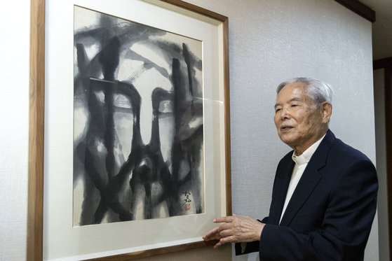 정양모 신부가 자택의 벽에 걸린 그림 앞에 서 있다. 정 신부는 자신이 가장 좋아하는 예수의 그림이라고 했다. 장진영 기자