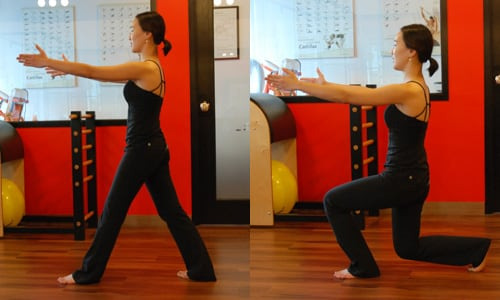 스쿼트나 런지(아래 사진 참고), 계단 오르기 등으로 다리 근육을 단련해두면 무릎 관절을 지지하고 보호하는 근육이 커지므로 노년기 불청객인 ‘무릎 통증’도 예방할 수 있다. 만약 무릎 통증이 이미 생겼다면 더 나빠지기 전에 조치를 취해야 한다. 스쿼트 대신에 옆으로 누워서 다리를 올리고 내리거나 의자 등받이를 짚고 서서 발뒤꿈치를 들었다가 내리는 방식으로 근육을 키우는 것이 좋다.