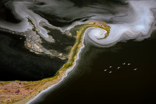 미국 사진가 데이비드 스윈들러는 하늘에서 본 플라밍고와 펠리컨, 사막의 독특한 플라야 지형(초목이 없는 사막 분지) 사진으로 올해의 항공사진가상 3위에 이름을 올렸다. 스윈들러 작가는 아프리카 케냐 그레이트리프트밸리의 나쿠루 호수 위로 일곱 마리의 플라밍고가 대열을 지어 날아가는 모습을 포착했다.