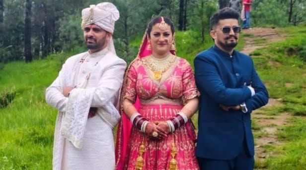 왼쪽부터 신랑 프라디프 네기, 신부 스나타 차우한, 신랑 카필 네기. /인디아 투데이
