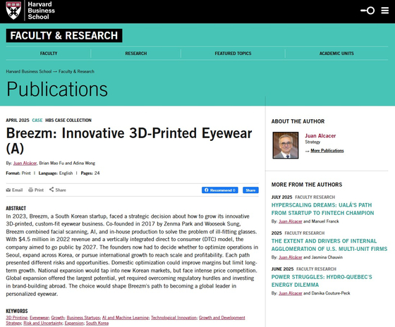 9월 열리는 가을학기 수업부터 브리즘 사례가 교재에 포함됩니다. 지난 1년 동안 하버드 경영대학원의 후안 알카세르 석좌교수 연구팀이 브리즘 한국 매장과 공장을 둘러보며 브리즘 사례를 탐색했어요. 알카세르 교수는 수백 년간 공급자 중심으로 이뤄지던 안경 산업의 구조를 브리즘이 맞춤형 안경을 통해 ‘소비자 중심’으로 재정의한 점, 3D·AI 등 기술을 통해 완전히 새로운 모델을 만든 점에 주목했습니다. 저도 강의에 참여해 학생들과 토론할 예정인데 무척 영광스럽습니다.