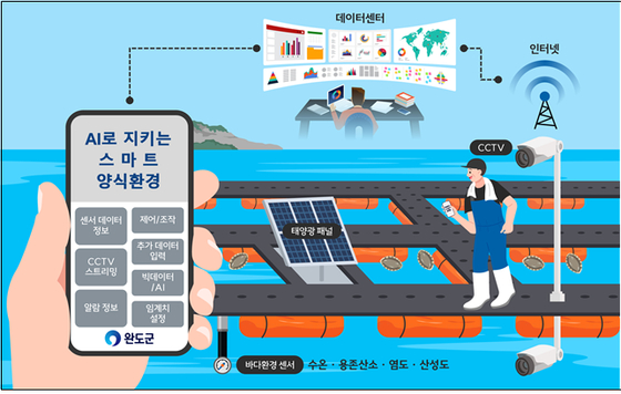 데이터로 키우고 AI로 지키는 청정바다 수산양식 플랫폼. 사진 완도군