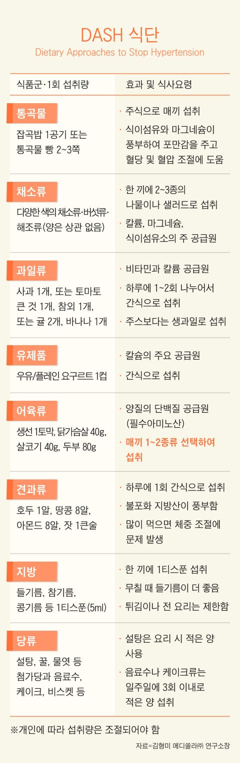 DASH(Dietary Approaches to Stop Hypertension) 식단은 고혈압을 치료하기 위한 식사 원리를 일상생활에서 실천하기 쉽게 고안된 식사요법으로 미국 국립 심·폐·혈 연구소(NHLBI)에서 오랜 기간 광범위하게 연구하여 효과를 입증했습니다.
