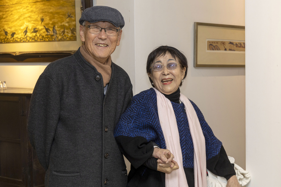 김용원과 그의 아내 신갑순 여사가 갤러리 '운심석면'에서 환하게 웃고 있다. 장진영 기자
