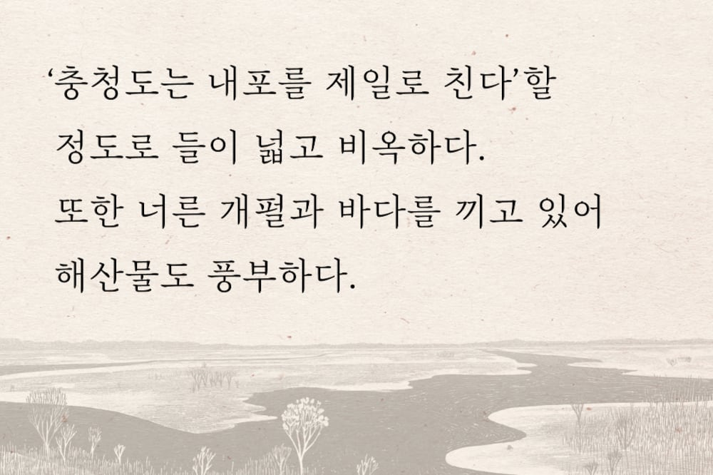 이곳은 예로부터 ‘서울의 세력 있는 집안치고 여기에 농토와 집을 두고 근거지로 삼지 않은 집안이 없다.… 충청도는 내포를 제일로 친다’ 할 정도로 들이 넓고 비옥하다. 또한 너른 개펄과 바다를 끼고 있어 해산물도 풍부하다.