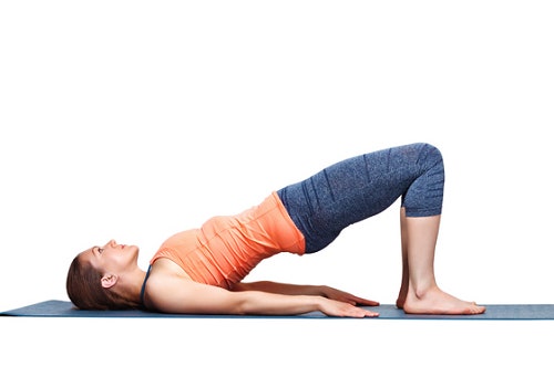누운 상태에서 엉덩이를 들어 올리는 운동으로, 엉덩이와 허벅지 뒤쪽 근육을 강화해 무릎에 가해지는 부담을 줄여준다.