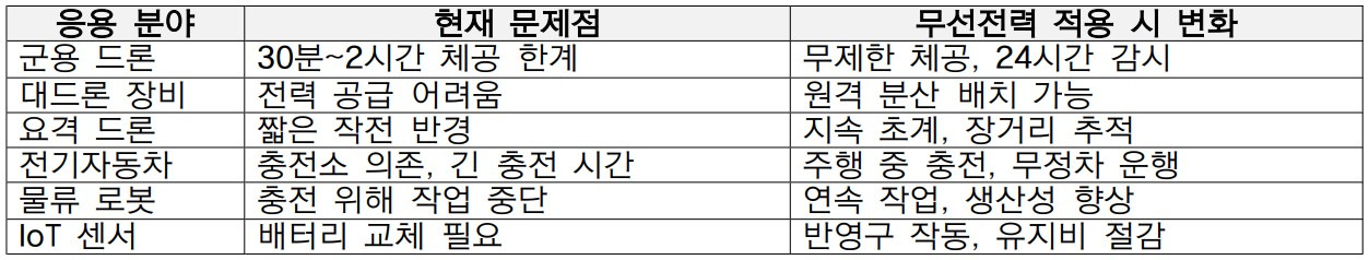 [표 3] 무선 전력 전송의 응용 분야