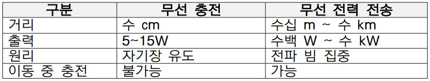 [표 2] 일반적인 무선 충전과 무선 전력 전송의 차이