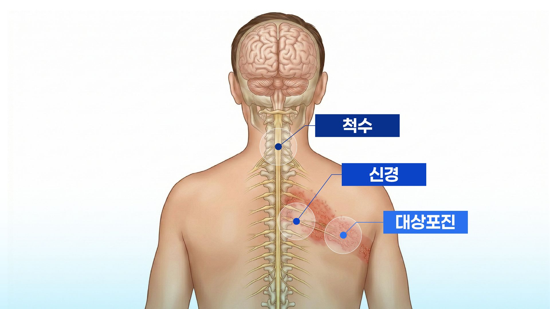 신경계를 따라 나타나는 대상포진은 발진 그 자체가 문제가 아니라 바이러스 재활성화로 뇌에 부담을 주는 게 핵심이다. 이민서 그래픽.