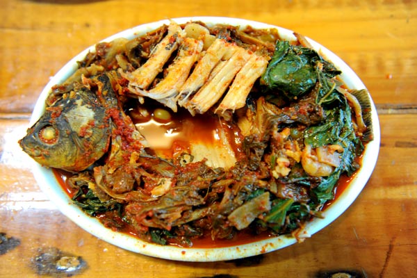 잘 익은 붕어에 젓가락을 가져다대니 하얀 속살을 그대로 드러낸다. 보기만 해도 먹음직스럽다. 그대로 입 속에 넣으니 담백하고 매콤한 맛이 입안에 맴돈다. 한두 번 먹다보니 젓가락은 저도 몰래 붕어의 살을 찾아 헤맨다.