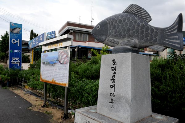 ▲ 진천군 초평면 화산리 인근에 형성된 '초평마을'은 민물고기 음식점이 즐비하다.