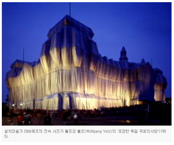 크리스토 야바체프(79)와 그의 아내 장 클로드(1935~2009)는 60년대부터 세계 각지를 돌며 기념비적 건물에 천으로 된 장막을 씌우는 프로젝트를 시작했다. 건물의 외관을 추상화해 부드러운 형태를 돋보이게 하는 작품이었다. 대개 건물마다 2주 정도만 장막을 씌워 뒀다. 95년엔 독일 국회의사당에 프로젝트를 진행했고 수백만 명이 관람하는 등 큰 성공을 거뒀다. 포장된 의사당의 이미지는 막 통일된 독일 민주주의 새 출발의 상징이 됐다. 그런데 3년 뒤 독일의 한 광고회사가 이 의사당을 찍은 사진으로 엽서를 발매한다. 야바체프의 전속 사진가 볼프강 볼츠(66)가 프로젝트 당시 찍은 것이었다. 야바체프는 저작권을 침해했다며 소송을 건다. 쟁점은 이 프로젝트가 ‘예외적 조망권’에 해당하는지였다. 독일에선 어떤 예술 작품이 공공 장소에 항상 자리 잡고 있다면 원작자의 동의 없이 촬영할 권리를 보장한다. 독일 재판부는 “작품이 일시적으로 설치된 것이므로 항상 설치된 작품과 달리 예외적 조망권을 줄 수 없어 저작권을 인정한다”는 판단을 내렸다.