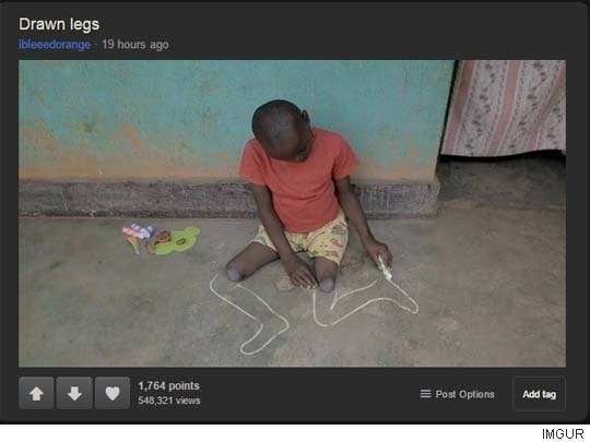 한 아이가 낙서를 하고 있다. 다리를 그렸다. 실제로는 없는 자신의 다리를 그린 것이다.