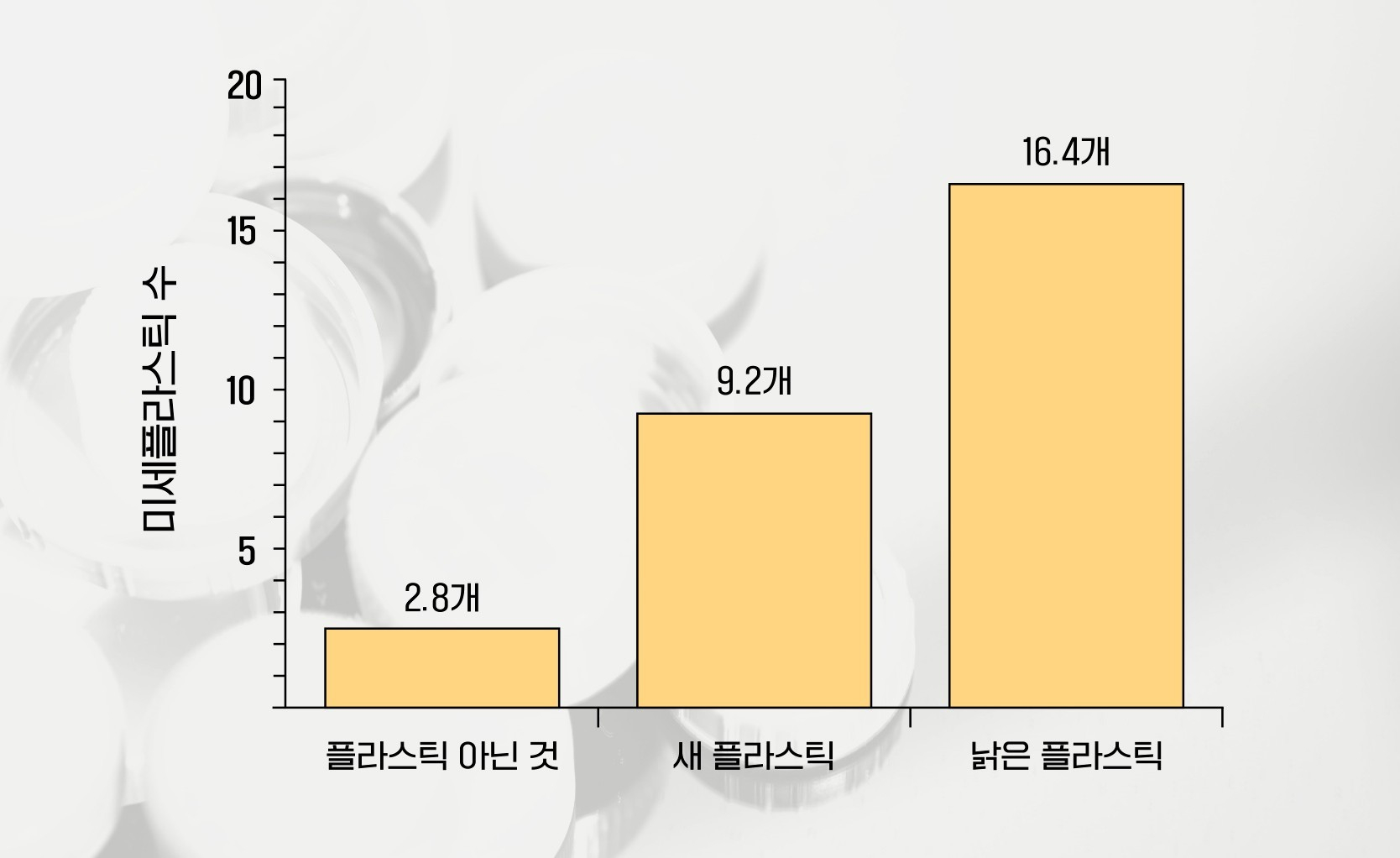 낡은 플라스틱은 새 플라스틱보다 2배 정도 많은 미세플라스틱이 나온다고 볼 수 있겠습니다.